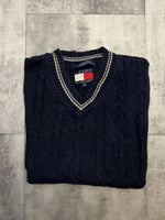 👕 || Gilet sans manches Tommy Hilfiger, idéal pour la mi-saison. Il est bleu marine avec des finitions blanches et grises au col et aux emmanchures. Il présente un motif torsadé sur l'ensemble du vêtement. 📏 || Taille : XL (Largeur : 47cm | Longueur : 62cm) ✅ || État : Très bon état 📦 || Livraison rapide sous 24H Pour plus d'informations sur ce gilet sans manches, n'hésitez pas à me contacter ❓❗️ #tommyhilfiger #giletsansmanches #vintage #preppy #XL #bleu #automne #hiver #mi-saison #modehomme #W514
