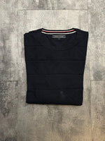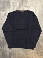 👕 || Pull Tommy Hilfiger bleu marine avec un motif texturé. Col rond et finitions côtelées aux poignets et à la taille. Logo brodé sur la poitrine.