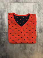 đź‘• || Pull fin Tommy Hilfiger rouge Ă  pois noirs. Col V.