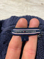 👕 || Pull Tommy Hilfiger bleu marine avec un joli motif torsadé. 📏 || Taille : L (Largeur : 37cm | Longueur : 63cm) ✅ || État : Très bon état 📦 || Livraison rapide sous 24H Pour plus d'informations sur ce pull, n'hésitez pas à me contacter ❓❗️ #tommyhilfiger #pull #bleu #torsadé #mode #vintage #hiver #femme #tailleL #4A1439