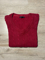 👕 || Pull Tommy Hilfiger rouge bordeaux avec un col en V et des torsades. 📏 || Taille : M (Largeur : 34cm | Longueur : 59cm) ✅ || État : Très bon état 📦 || Livraison rapide sous 24H Pour plus d'informations sur ce pull, n'hésitez pas à me contacter ❓❗️ #tommyhilfiger #pull #rouge #bordeaux #torsades #colv #tailleM #mode #femme #vintage #occasion #friperie #secondemain #vetements #4A1454