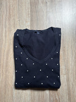👕 || Pull Tommy Hilfiger bleu marine à pois blancs. 📏 || Taille : M (Largeur : 42.0cm | Longueur : 63.0cm) ✅ || État : Très bon état 📦 || Livraison rapide sous 24H Pour plus d'informations sur ce pull, n'hésitez pas à me contacter ❓❗️ #tommyhilfiger #pull #pois #bleumarine #mode #femme #vintage #tailleM #3A2818