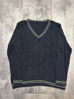 👕 || Pull noir Tommy Hilfiger avec des rayures blanches et vert clair au col et aux poignets. Le pull a un motif ajouré sur le devant. 📏 || Taille : XL (Largeur : 44.0cm | Longueur : 66.0cm) ✅ || État : Très bon état 📦 || Livraison rapide sous 24H Pour plus d'informations sur ce pull, n'hésitez pas à me contacter ❓❗️ #tommyhilfiger #pull #noir #XL #vintage #ajoure #rayures #2Z1006