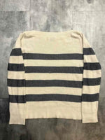 đź‘• || Pull Tommy Hilfiger, beige et bleu marine, Ă rayures horizontales. Col bateau.