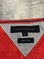👕 || Pull Tommy Hilfiger, couleur rouge vif, taille XL. Matière lin et coton, idéal pour la mi-saison.