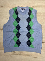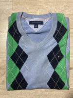 👕 || Gilet sans manches Tommy Hilfiger, idéal pour la mi-saison. Il présente un motif à losanges bleu clair, vert et noir. 📏 || Taille : L (Largeur : 43cm | Longueur : 68cm) ✅ || État : Très bon état 📦 || Livraison rapide sous 24H Pour plus d'informations sur ce gilet, n'hésitez pas à me contacter ❓❗️ #tommyhilfiger #giletsansmanches #vintage #preppy #bleu #vert #noir #losanges #mi-saison #4A371