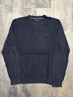 👕 || Pull Tommy Hilfiger bleu marine, taille L. Parfait pour un look décontracté et élégant.